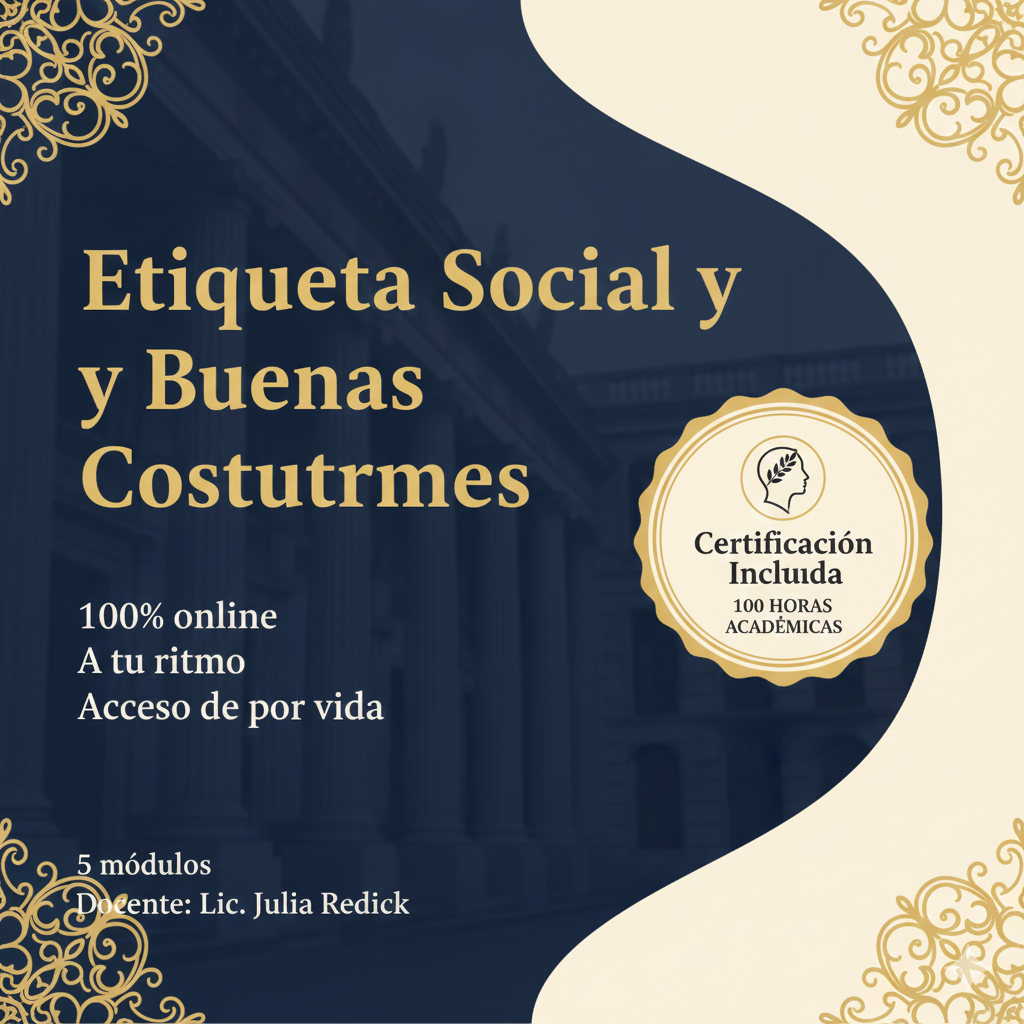 Etiqueta Social y Buenas Costumbres - 5 Módulos a tu ritmo - Certificado de 100 horas.