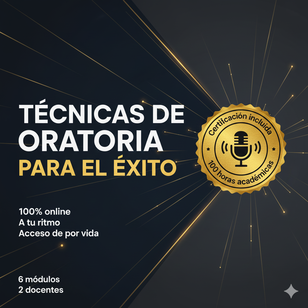 Técnicas de Oratoria para el Éxito - 6 Módulos a tu ritmo - Certificado de 100 horas.