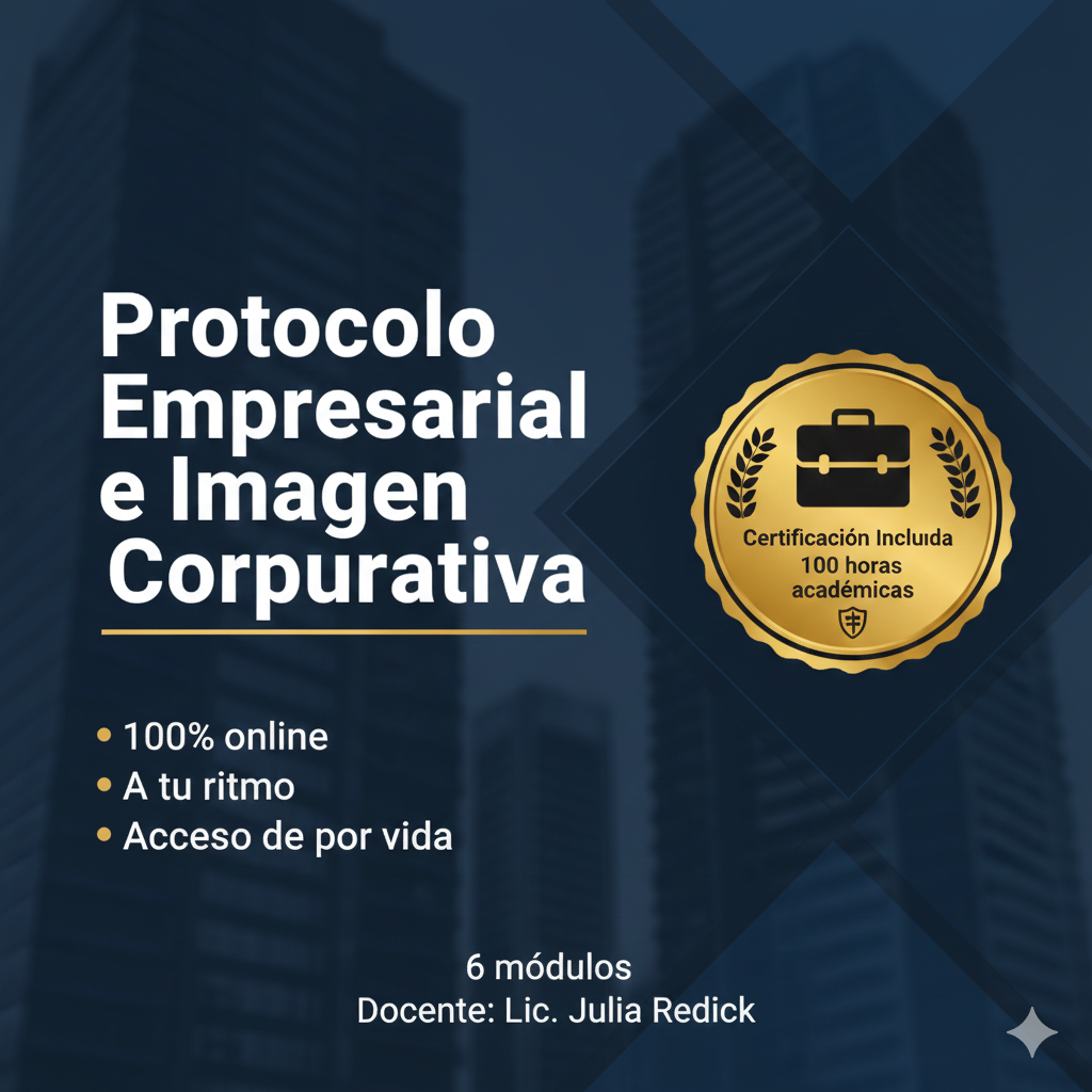 Protocolo Empresarial e Imagen Corporativa - 6 Módulos a tu ritmo - Certificado de 100 horas.