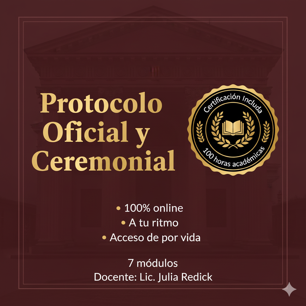 Protocolo Oficial y Ceremonial - 7 Módulos a tu ritmo - Certificado de 100 horas.